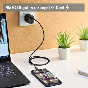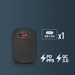 Cargador GaN de pared USB-C de 20W (PD y PPS) con una potencia de salida máxima.