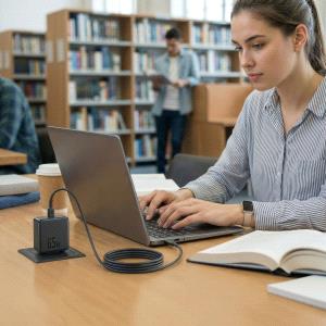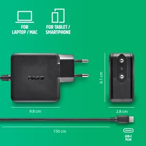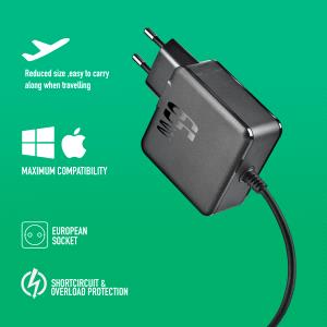 Fabricado en GaN y materiales ignífugos, es ideal para ordenadores portátiles, tabletas y smartphones.