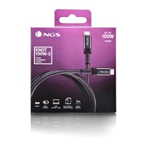 Cable de 2m de longitud para carga rápida de dispositivos de hasta 100W.