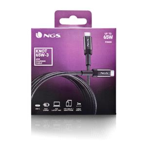 Cable de 3m de longitud para carga rápida de dispositivos de hasta 65W.