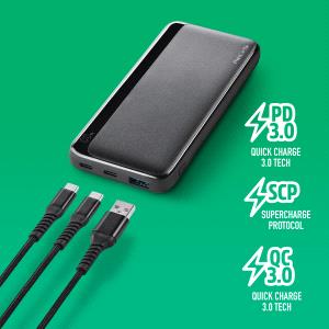 Este power bank va más allá de la carga rápida estándar. Gracias a la combinación de tecnologías PD 3.0, QC 3.0 y SCP, proporciona una carga ultrarrápida que permite alcanzar el 50% de batería en tan solo 30 minutos. Ideal para quienes exigen eficiencia en todo momento.