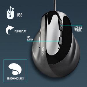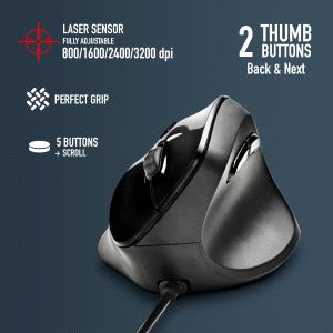 Este ratón vertical cuenta con 5 botones y una rueda de desplazamiento.