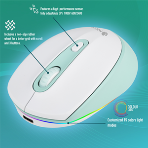 Dispone de retroiluminación RGB personalizable, con 15 colores que podrás cambiar fácilmente haciendo clic en la rueda de desplazamiento central. La retroiluminación también puede apagarse.