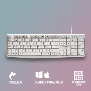 TECLADO USB-A CON 12 TECLAS MULTIMEDIA. SILENCIOSO, CABLE DE 1,5M, ÁNGULO DE INCLINACIÓN, PLUG&PLAY