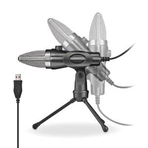 Micrófono USB con soporte de trípode. Ideal para PC o portátil.