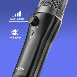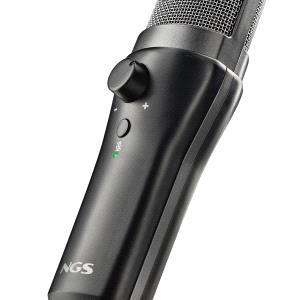 Puerto de monitorización de auriculares de latencia cero, ganancia del micrófono, botones de silencio y de volumen.