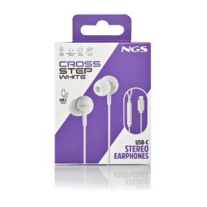 Écouteurs intra-auriculaires avec microphone et bouton multifonction. Connexion USB-C.