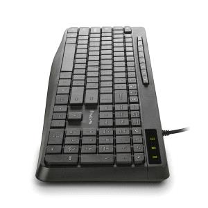 Tastiera multimediale piatta con tasti silenziosi e 8+12 tasti multimediali.